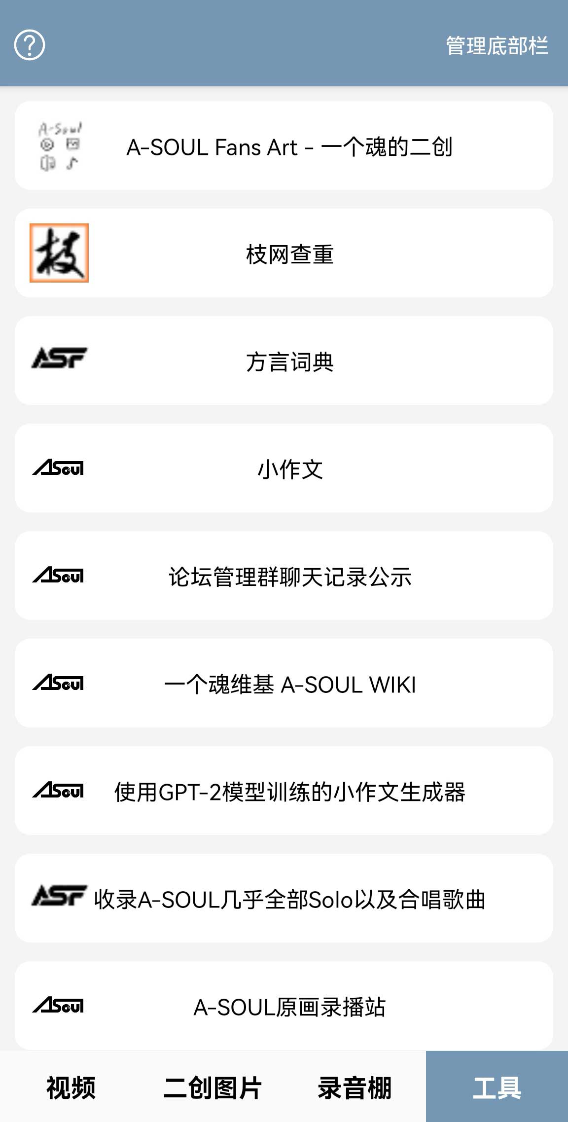 整合asoul功能性网站可以定制喜欢的功能 放在底栏 点开即用
